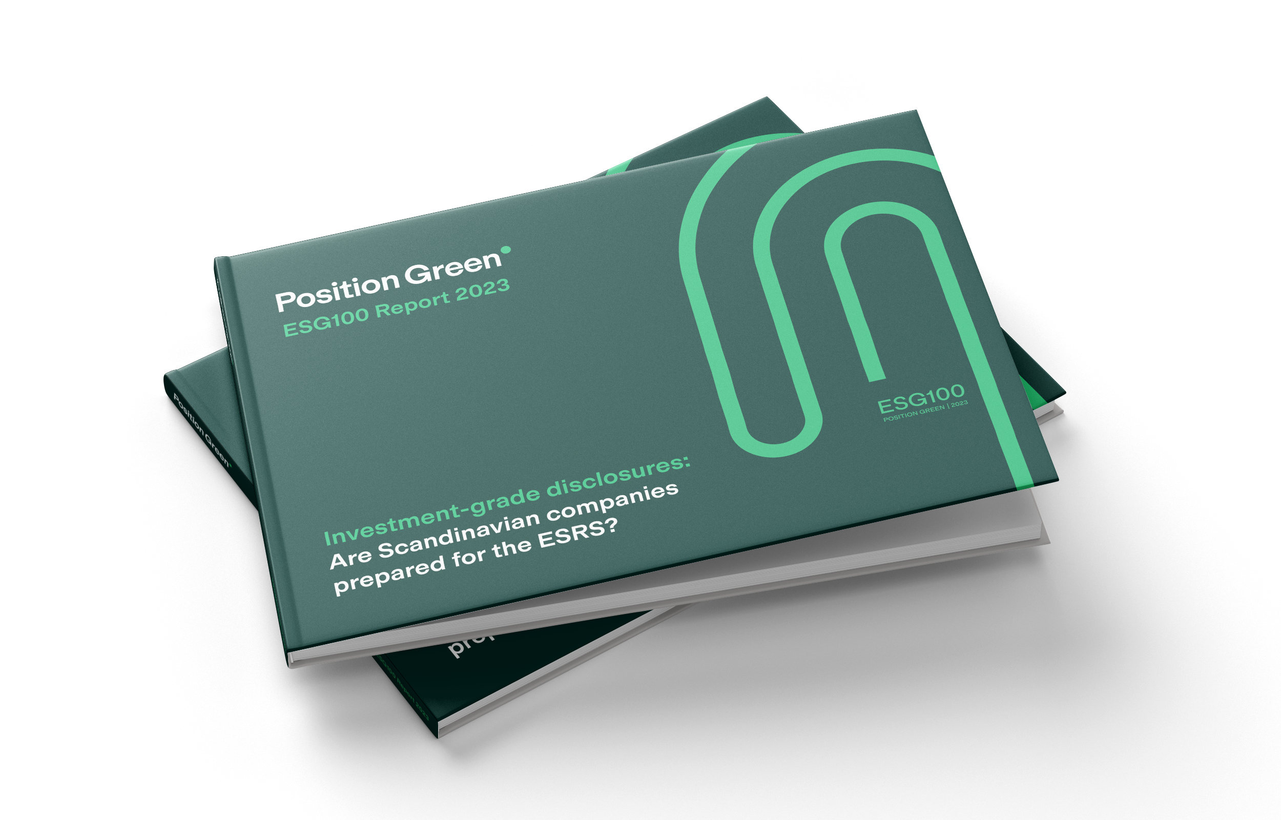 Mit ESG100 gibt Position Green einmal im Jahr eine Einschätzung zur ESG-Berichterstattung der jeweils 100 größten börsennotierten Unternehmen in Norwegen, Schweden, Dänemark und der EU ab.