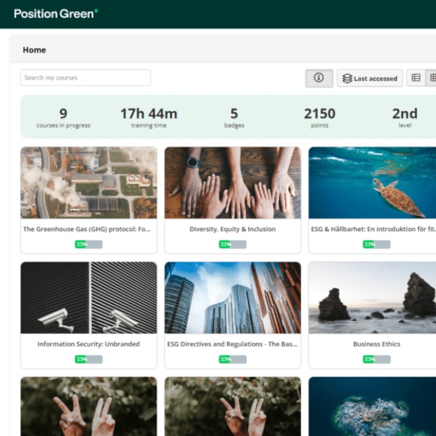 Empower your workforce, in a way that serves your business best. Our ESG courses and e-learning packages are part of your sustainability home with Position Green and allow flexible training, anytime and anywhere.