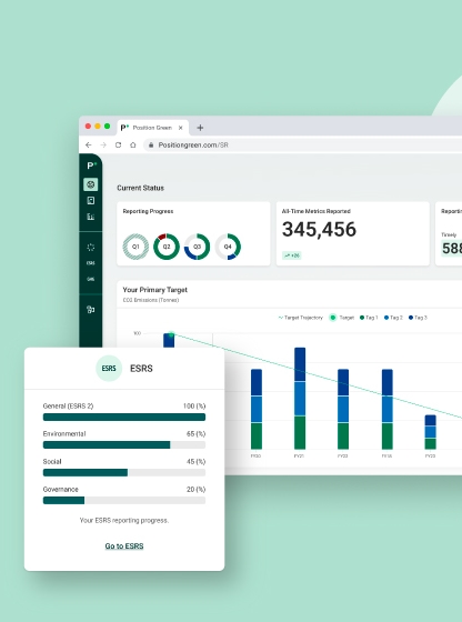 We have long worked with pioneering companies worldwide to help navigate the regulatory landscape, drive sustainability performance and sharpen their competitive edge. Whether starting out or leading the way, you can utilise Position Green’s award-winning ESG software, advisory support and e-learning expertise to fuel your journey from compliance to sustainable impact.