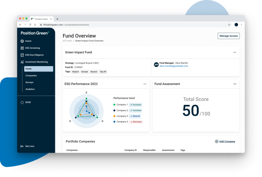 Position Green’s full-cycle investment software supports GPs and LPs during the entire investment cycle with complete transparency – from initial screening and ESG due diligence to portfolio management and exit readiness.